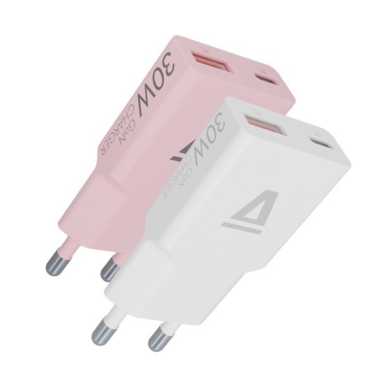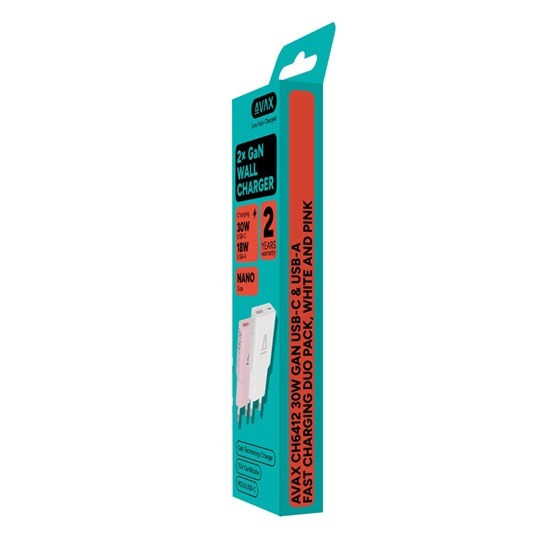 Az AVAX CH6412 GaN gyorstöltő duo szett modern, nagy teljesítményű és kompakt megoldást kínál a mindennapi töltési igényekhez. A csomag két darab töltőfejet tartalmaz – fehér és rózsaszín színben –, amelyek USB-C és USB-A kimenettel is rendelkeznek, így egyszerre többféle eszköz töltésére alkalmasak.