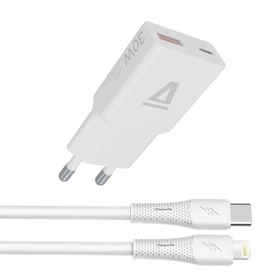 Az AVAX CH6414 csomag praktikus és teljes körű megoldást kínál a modern töltési igényekhez. A csomag 30W GaN gyorstöltőt és 27W USB-Lightning szilikon kábelt (1,5 m) tartalmaz, így ideális választás otthoni, irodai vagy utazás közbeni használatra.