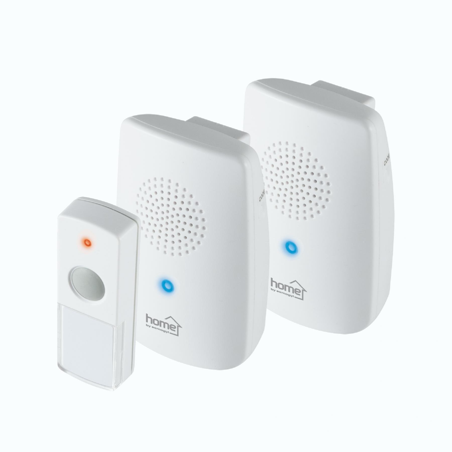 Home DBS 1001DC vezeték nélküli csengőszett, 2 beltéri egység és 1 nyomógomb, 100m hatótáv, többszólamú hang, 8 dallam, elemes tápellátás