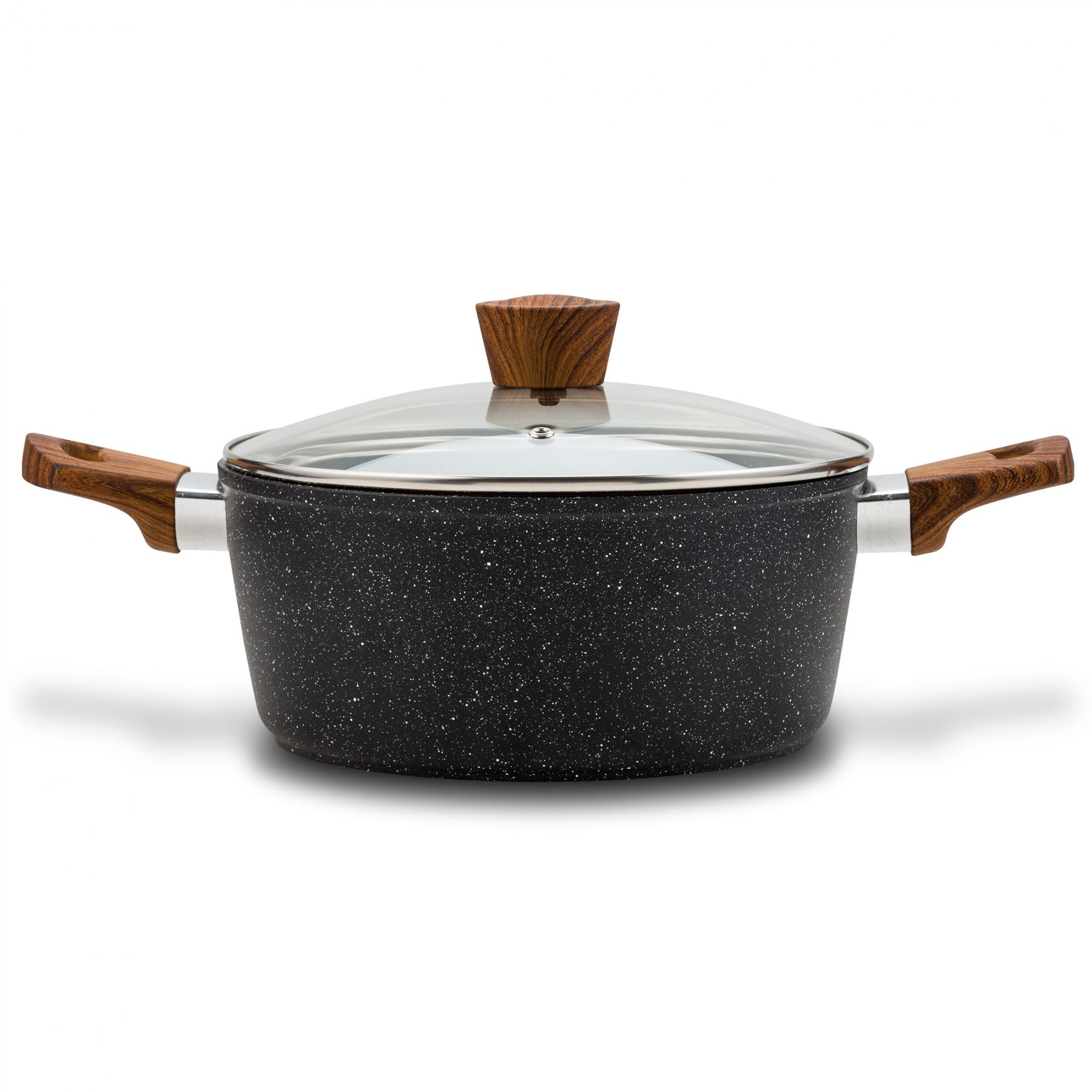 Nava 10-144-122 Nature tapadásmentes lábas, kőbevonattal, hőálló fogantyú, üvegfedő, 28 cm