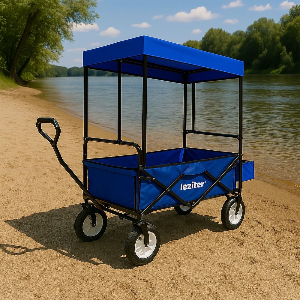 Tető: A tetővel felszerelt strandkocsi védelmet nyújt a közvetlen napsugarak ellen, így a kocsiban tárolt dolgok minden körülmények között biztonságban lesznek. A tető kényelmes árnyékának köszönhetően egyszerű tárolást kínál a strandfelszereléseknek, hűtőtáskának és minden kiránduláshoz szükséges tárgynak. Lehetővé teszi a tökéletes szállítást, hiszen nagyszerűen véd a por, homok vagy egyéb szennyeződések ellen. Így a dolgok tiszták és sértetlenek maradnak.