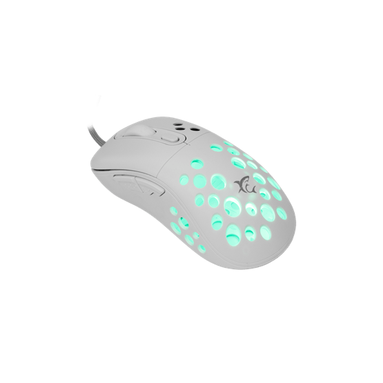 White Shark AZRAEL-W, GM-5013W gamer egér, fehér, 7200dpi (12800SW). 6D – 6 gombos kivitel, Instant 825 chipset, Felbontás: 1200 / 1600 / 2400 / 3200 / 4800 / 7200 DPI, RGB háttérfény, matt felület. Kábelhossz:1,5m. Szövet borítású hajlékony kábel.