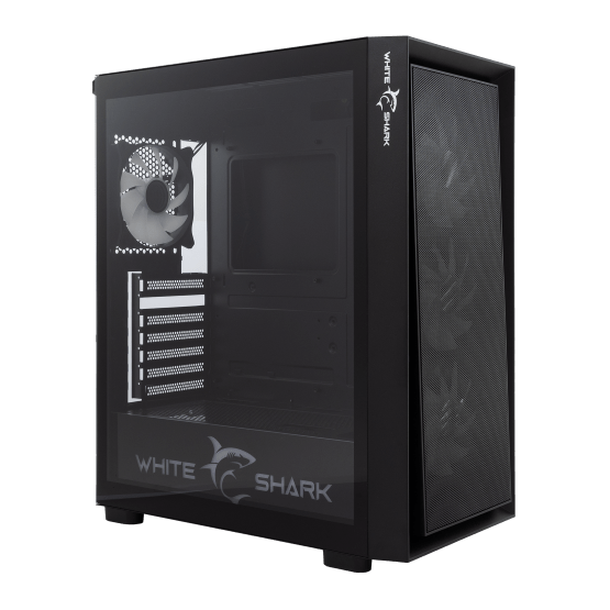 Edzett üvegből és fémből készült számítógépház, mely ideális ATX, e-ATX, M-ATX és ITX alaplapokhoz.