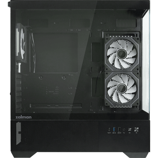 - Ventilátor támogatás: Felül 3 x 120 mm vagy 2 x 140 mm, oldalt 2 x 120 mm, hátul 1 x 120 mm, alul 3 x 120 mm